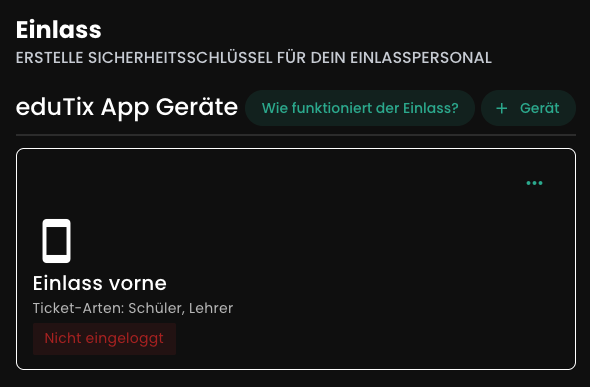 In eduTix befindet sich im Abschnitt "Einlass" der Knopf "+ Gerät".